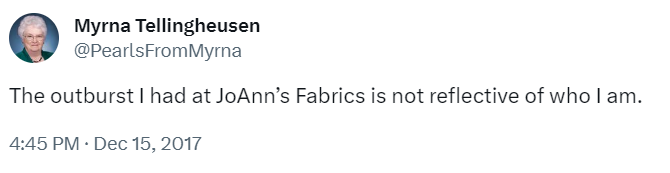 Life isn’t static. It changes from day to day. This is why conventional wisdom says that whatever is most important for you to do, get it done in the morning. Because you never know what curveballs you might get during the day. You may even wind up face-to-face with an upset Myrna Tellingheusen in JoAnn’s Fabrics, or worse, being Myrna.